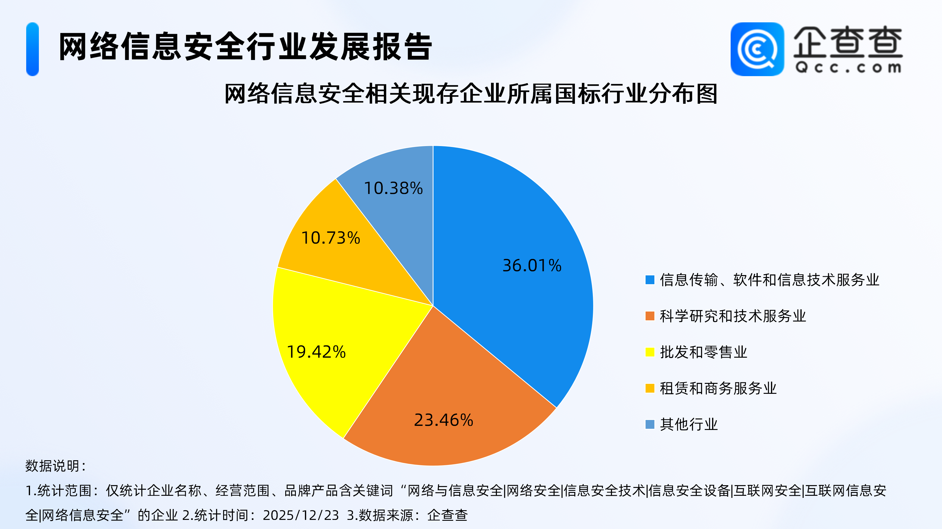 企查查数据显示,国标分布上,国内网络信息安全相关现存企业中配资证券网,近4成相关企业归属于信息传输、软件和信息技术服务业,占比达36.01%,其次为科学研究和技术服务业,占比达23.46%。